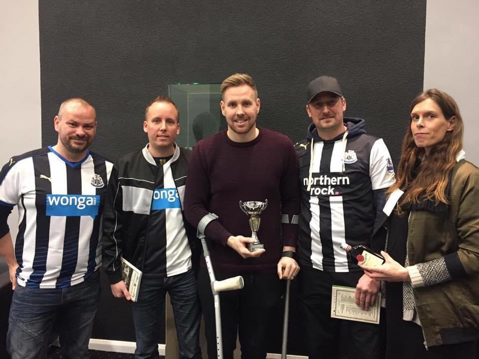 Hver sæson stemmes der blandt danske Newcastle-fans om hvem der er sæsonens spiller. Afstemningen foregår på vores Facebookside ‘Newcastle United Denmark’. Flere år har vi været så heldige at overrække en pokal til sæsonens spiller, som udvalgt af de danske fans. Se billeder herunder.